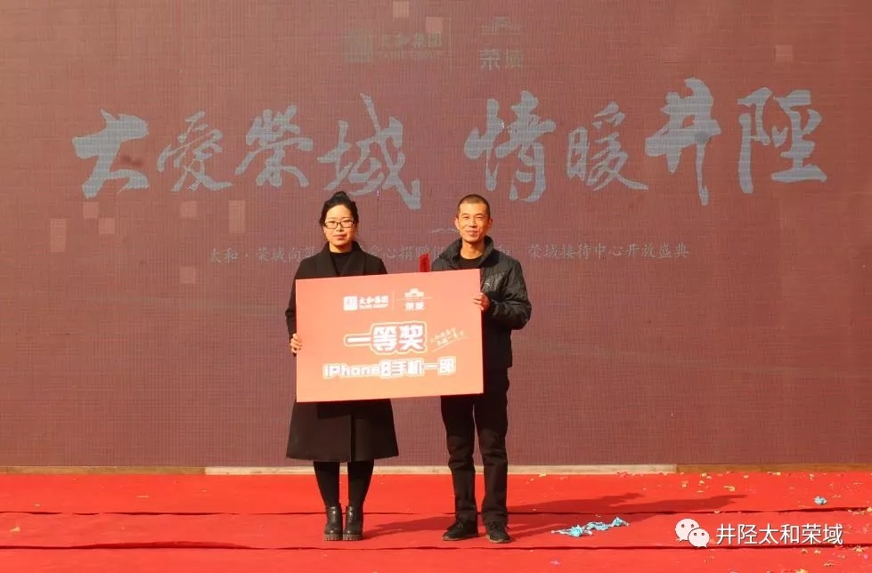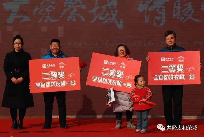2018年1月14日,【太和·榮域】愛心捐贈儀式暨接待中心的綻放圓滿舉行。井陘縣人民檢察院檢察長梁永福先生、河北太和集團總裁兼太和電子城總經理李美璇女士、井陘縣住房和城鄉建設局局長樊國強先生、井陘縣微水鎮人民政府黨委書記趙建軍先生、井陘縣教育局局長劉華杰先生、井陘縣國土資源局局長張貴文先生、井陘縣微水鎮鎮長張海亮先生、河北太和集團地產運營中心總經理趙博超先生、河北太和集團井陘榮域項目總經理許詠梅女士蒞臨現場。同時還有,井陘縣微水鎮微水村、南河頭村,井陘縣交警大隊、城管大隊等相關部門的領導和工作人員,以及第一小學的部分老師共同到場觀禮。
