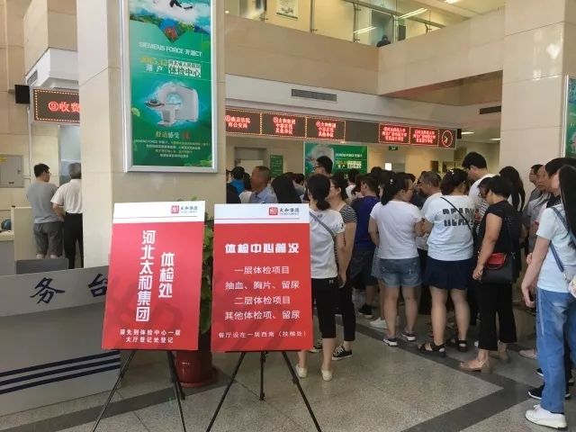 根據《河北太和集團員工關懷體系》和《河北太和集團經銷商關懷體系》的相關內容及集團盧凱斌董事長、李美璇總裁的重要指示,為把關愛送給大家,將健康帶給大家,集團公司于2018年6月23、24日組織各企業干部員工和年度金牌經銷商在河北省人民醫院體檢中心進行公費健康體檢,體檢人數共計200余人。
