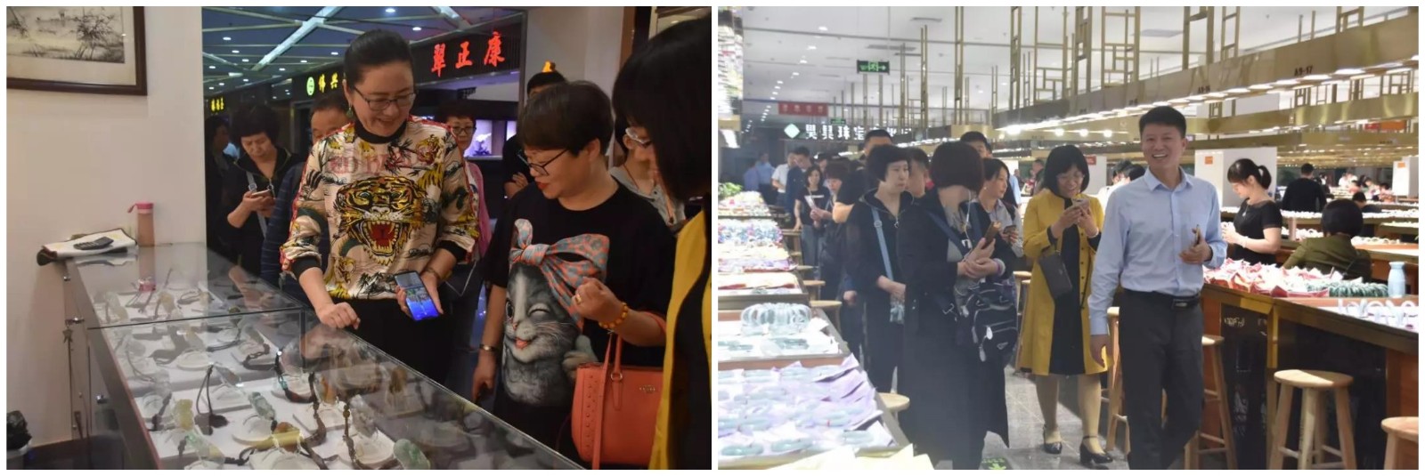 粵港澳之旅的第一站,觀光考察團一行人來到四會玉博城。玉博城是太和集團旗下的第六大商場,于2019年3月9日隆重開業。總計17萬平米體量,吸納8000多家實力玉商入駐。從成品掛件、精美手鐲到精品擺件,四會玉博城精美翡翠飾品和絡繹不絕、穿梭如織的人流,讓考察團留下了深刻的印象。玉博城不僅有全品類精品翡翠,而且規模之宏大、硬件之全和極具性價比的翡翠制品都讓考察團贊嘆不已。