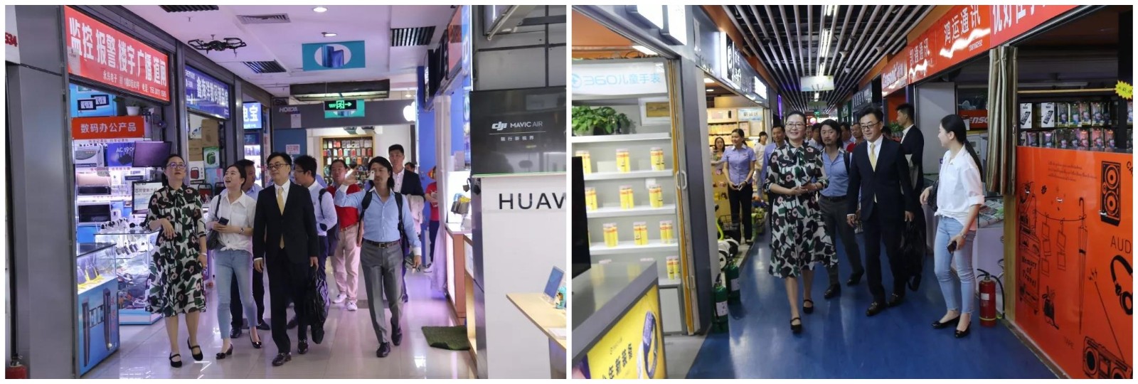 隨后,考察團展開對太和集團三大商城以及地產項目盛世御城的參觀考察。各商城工作人員在門口列隊迎候,熱烈歡迎國際友人的到訪。來賓首先聽取了講解員的簡單介紹,李總、國總、陳總、尚總分別向來賓介紹各個商城的產品品類和經營業態。大家在各品類店面前,駐足觀看,了解各種熱賣產品。
