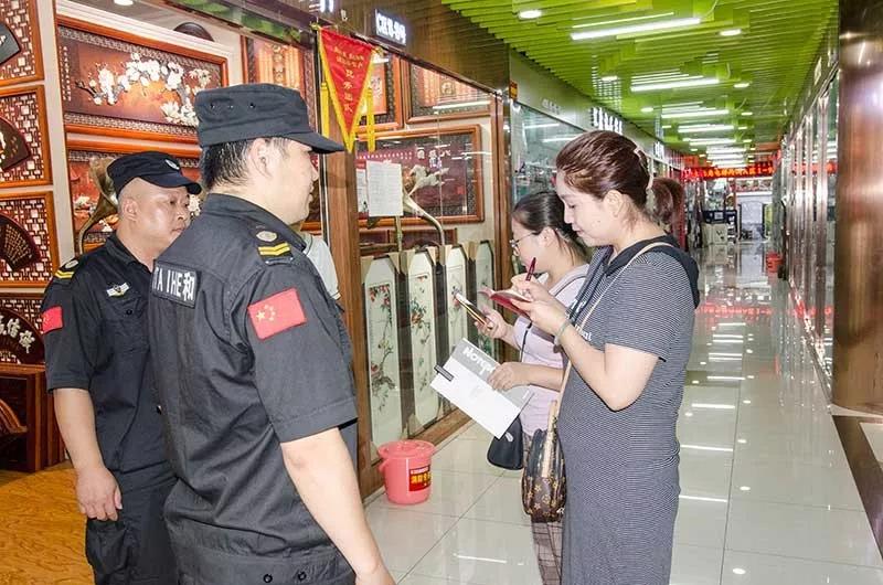 首先在陳暇總經理陪同下,劉站長對禮品城市場安全生產和消防工作進行了詳細的參觀和了解,在參觀的過程中看到巡查保安員正在對經銷商進行一對一的消防安全培訓,劉站長認真聽取了巡查保安的工作介紹。