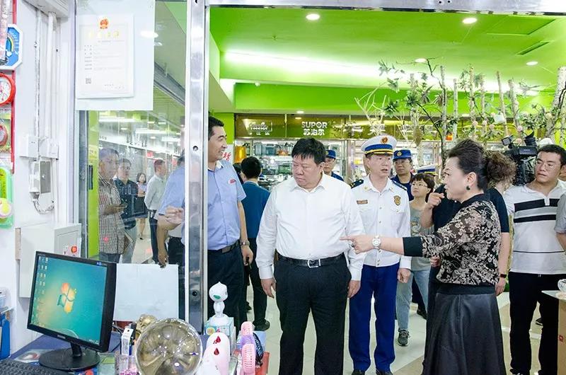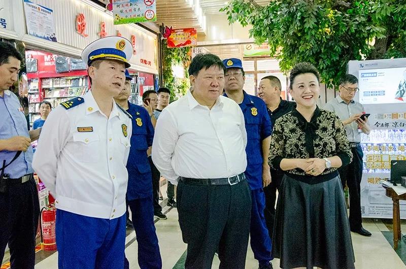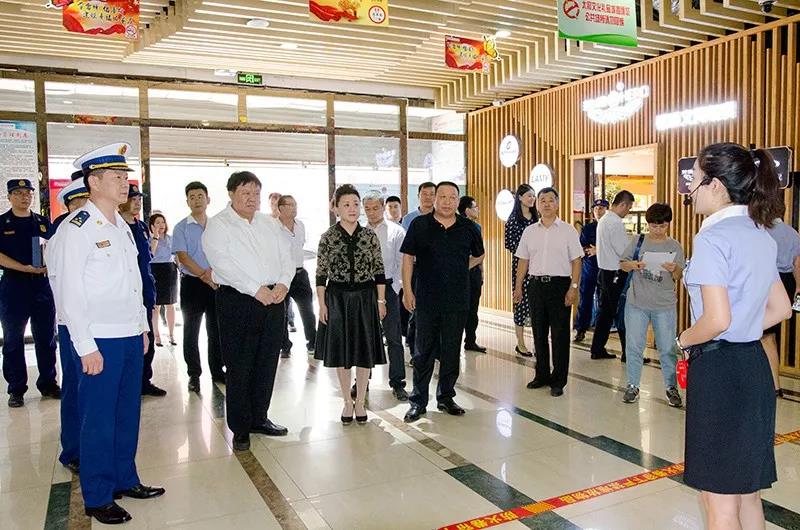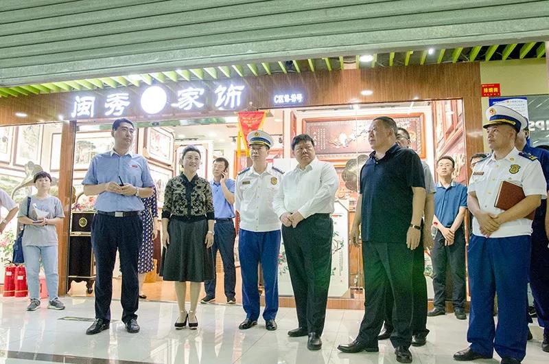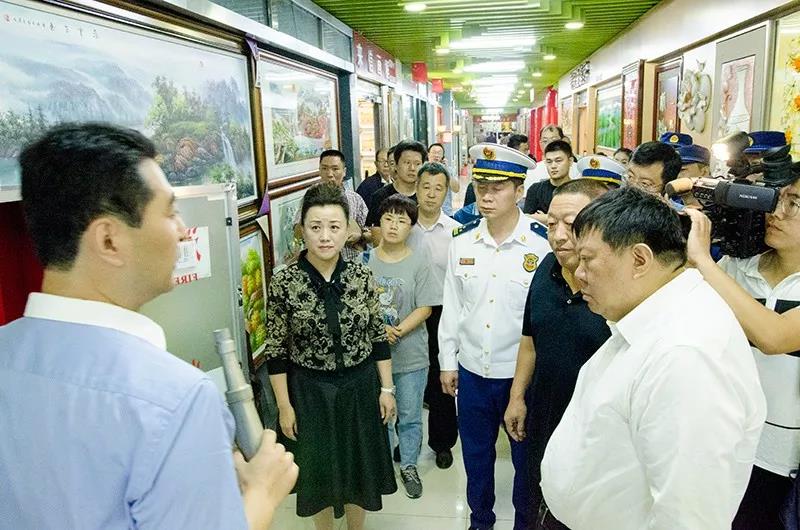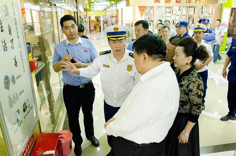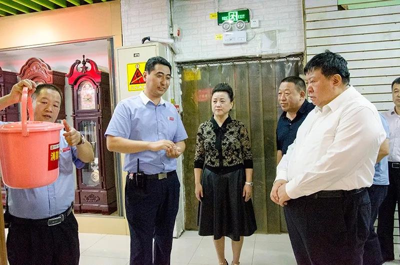 隨著國慶佳節的臨近,為廣大經銷商和消費者提供一個祥和、安全、放心、舒心的經營及購物環境,確保商城內的消防安全,9月30日,由石家莊市副市長李雪榮、石家莊市消防救援支隊政委魏廣軍、石家莊市消防救援支隊副支隊長由廣東、石家莊市消防救援支隊防火處處長張永輝、長安區區長穆德英、長安區副區長白金旗、長安區消防救援大隊大隊長張新江、南三條市場管理服務中心副主任呂書斌一行親臨太和文化禮品城視察消防工作。太和文化禮品城總經理陳暇及中層經理熱情接待了各位領導的到來。