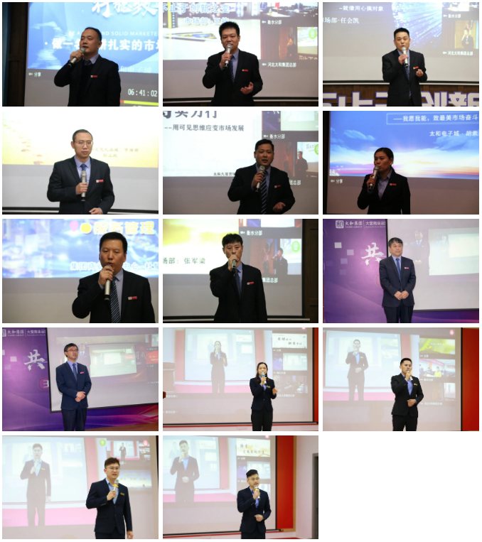 為了給眾多商業市場精英提供展示風采、挖掘潛力的舞臺,更好地搭建集團商業人才梯隊,本次前哨大會特別舉辦了太和集團市場精英風采展示活動,各商業企業共14名市場部主管紛紛登臺,滿懷信心和激情,發表自己對市場管理、運營、招商及服務等方面的認知、思路和觀點。他們勇于挑戰自我、突破自我,追求上進、敢于亮劍的優秀精神,充分展現出了太和集團員工的嶄新面貌和風采。