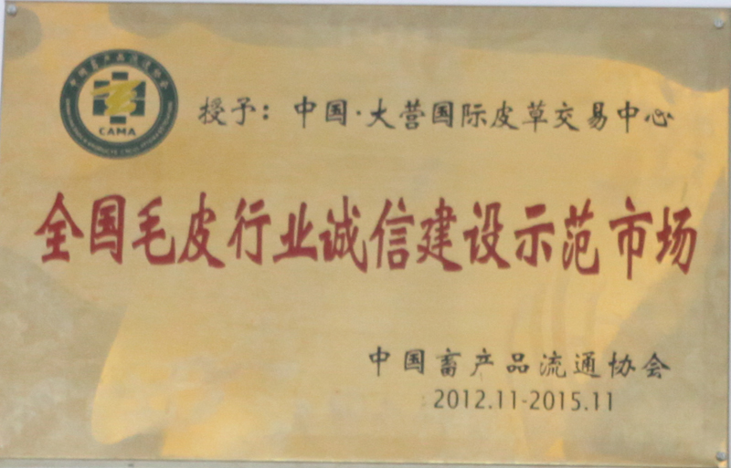 中國·大營國際皮草交易中心榮獲 全國皮毛行業(yè)誠信建設(shè)示范市場