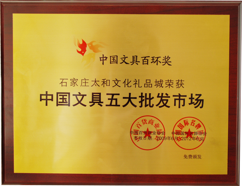 太和文化禮品城榮獲 中國文具五大批發(fā)市場