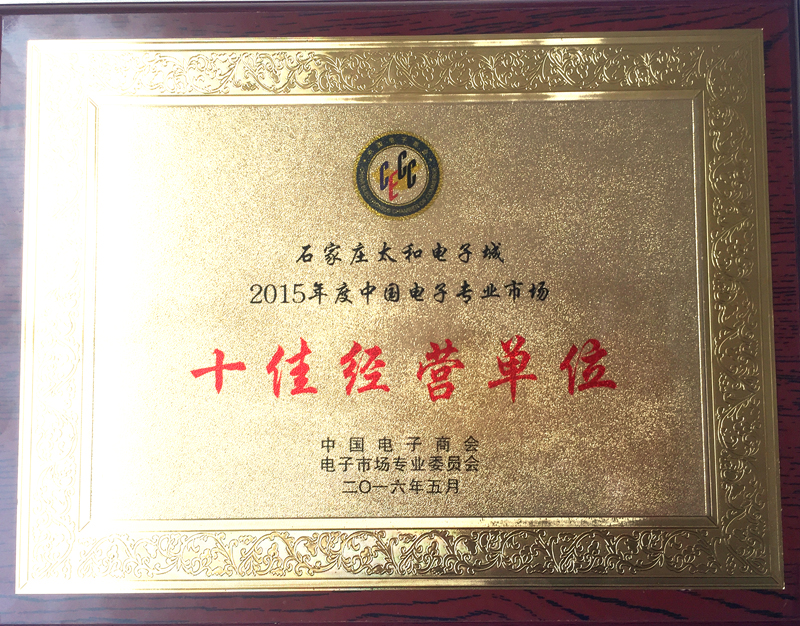 太和電子城榮獲 2015年度中國(guó)電子專業(yè)市場(chǎng)十佳經(jīng)營(yíng)單位
